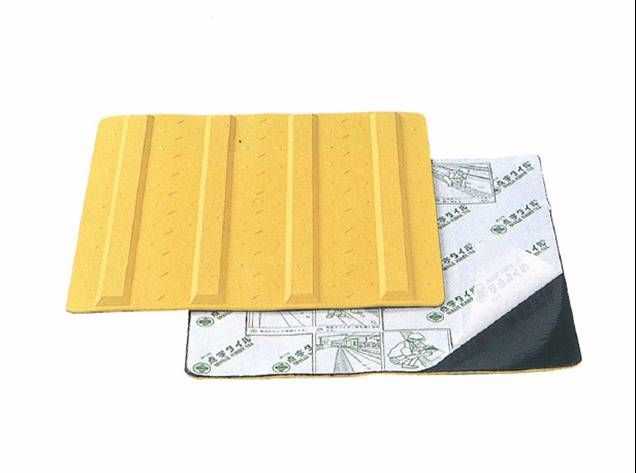 ●特徴屋外に適する合成ゴムにより成形したもので、製造段階において裏面に無溶剤性の特殊なゴム系粘着剤を感圧処理した製品です。使用にあたっては専用のプライマー剤で仕上げ床材面を処理して直接に貼着するタイプです。施工が簡単で耐候性、耐磨耗性、耐熱性になどに優れています。全面を粗面仕上げとチェッカー加工による防滑性を考慮し、また四隅を面取り加工して剥離防止を考慮した屋外用の製品です。型番:SM300-JN