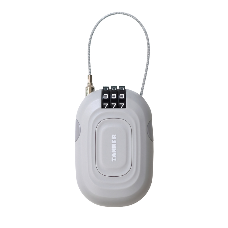 シンプルでコンパクトなデザインのワイヤーロックで、バッグに入れてもかさばりません。ダイヤルタイプのワイヤー巻取り式のロック機構で、すぐに施錠・解錠が可能です。長さ60×幅80×高さ20mm