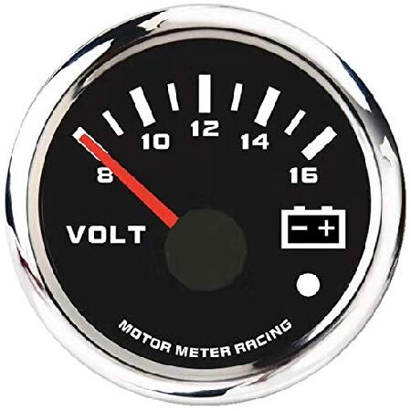 【並行輸入品】 MOTOR METER RACING W Pro Series 52mm 2-1/16" Volt Gauge Voltmeter 8-16 V Black Dial White LED Warning Function Waterproof for Car