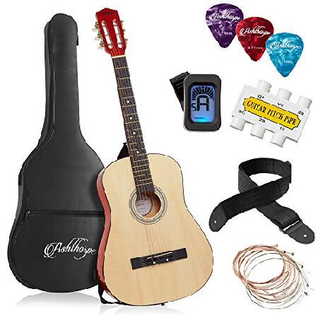 【並行輸入品】 Ashthorpe 38-inch Beginner Acoustic Guitar Package (Natural), Kids Basic Starter Kit w/Gig Bag, Strings, Strap, Tuner, Pitch Pipe,
