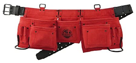 【並行輸入品】 Graintex DS2420 11 Pocket Professional Work Apron Red Color Suede Leather with 2” Leather/Webbing Belt, 2 Hammer Holders for