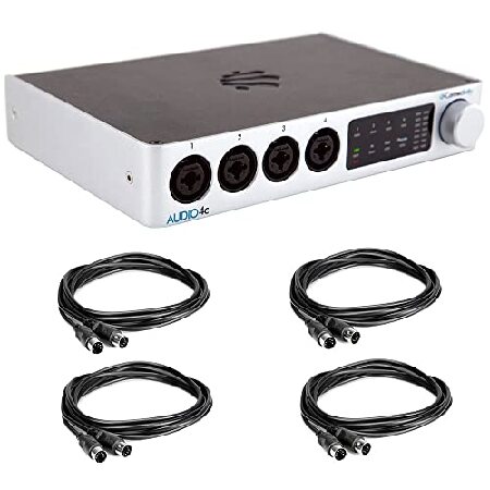 4つのプリアンプはXLR-1/4インチのコンボ入力とファントムパワーを備えているため、ダイナミックまたはコンデンサーマイク、楽器、ラインレベルのソースを受け入れることができます。 4つのバランスの取れたライン出力とステレオヘッドホン出力があり、独自のミックスが可能です。 外部MIDIデバイスの統合は、5ピンMIDI I/OとUSB-MIDIホストポートのおかげで、簡単で柔軟です。 静電容量式タッチコントロールは、操作をシンプルにするだけでなく、AUDIO4Cをコンパクトに維持するのにも役立ちます。