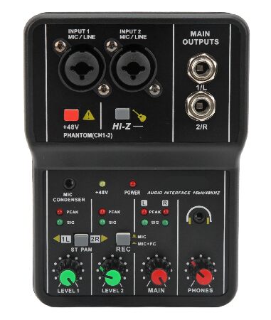 【並行輸入品】 ミニオーディオミキサー 2チャンネル USBポータブルライブサウンドカードサウンドボードコンソールシステム 48Vファントムパワー 16BIT 48KHZ