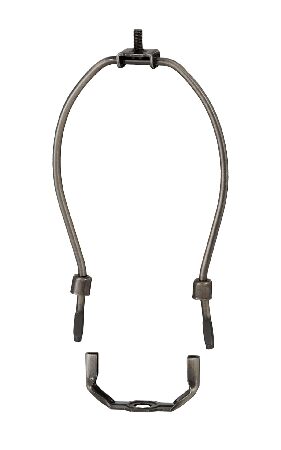 説明: B&P Lamp 8-1/2 Inch Heavy Duty Lamp Shade Harp Holder, Antique Bronze Finish - Heavy weight antique bronze finish lamp harp with harp base and a protective coating. It has 1/4-27M threads at the top and with a base to slip 1/8 IP.. Features Include: Heavy duty lamp harp with a detachable base and antique bronze finish, Top of harp accepts 1/4-27 finial which is the standard size for lamp harps, The saddle or base slips a 1/8IP (3/8 inch diameter), Measures from bottom of harp base to top of harp platform (not measuring the threads on top), Works as a great replacement for both table lamps and floor lamps
