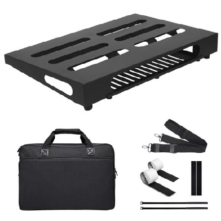 【並行輸入品】 SOYAN 18" x 11.8" Guitar Pedal Board with Power Supply Tray, Carry Bag & Mounting Tapes Included (Black, SPB-18S)