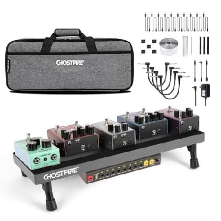 説明: Ghost Fire Sシリーズのエフェクトペダルボードは、デザインと機能性の頂点であり、パフォーマンスと携帯性の両方を求めるミュージシャンのために細心の注意を払って作られています。 超軽量5052アルミニウム合金製のペダルボードは、19.75インチ x 7インチの大きさで、19.75インチ x 7インチの印象的な軽さで、ケーブル管理のための十分なスペースを確保しながら、5-8エフェクトペダルを収容するのに最適なサイズです。 この考え抜かれたデザインは、セットアップがきちんとアクセスしやすい状態を保ち、絡まったワイヤーの邪魔をすることなく音楽に集中することができます。 GS10-SE出力ペダル電源と組み合わせて、ミュージシャンは包括的なパワーソリューションを備えています。 パッケージには、高効率電源ユニット、10本のDCケーブル(各長さ50cm)、逆極性アダプター、延長コード、3.5mmコンバーター、18V 1000mAアダプターが含まれており、ペダルに干渉することなく確実に電力を供給するために必要なすべてを提供します。 GS10-SEは10個の絶縁出力チャンネルを提供し、同時に最大10個のエフェクトに電力を供給できます。 9V1000mAで1チャンネル、9V100mAで5チャンネル、9V300mAで2チャンネル、2つの調整可能な電圧チャンネル(500mAで9V、12V、または18Vに対応)により、幅広いペダルパワー要件に対応します。 安全性と信頼性は、GS10-SEの設計の最前線にあり、独立した短絡保護によって証明されています。 過負荷や短絡が発生した場合、影響を受けるチャンネルは自動的にオフになり、LEDインジケーターがオフになると表示され、潜在的な損傷を防ぎ、残りのセットアップを邪魔されずに動作し続けることができます。 重量はわずか0.5ポンドで、放熱性アルミニウム合金製で、電源は軽量であるだけでなく、長持ちするように作られており、長時間の使用中に効率的に熱出力を管理します。 Ghost Fire Sシリーズは、サンドブラストとスプレーの表面が印象的で、耐久性と洗練されたプロフェッショナルな外観の両方を強化しています。 超硬質ABSの丸みを帯びた角がペダルバッグを傷から守り、プレミアム品質のタッチを加えます。 ペダルボードの人間工学的で特許取得済みのデザインには、簡単にアクセスできる傾斜機能と、付属の万能収納バッグにきちんと収まる折りたたみ式フットスタンドが含まれています。 ハンドバッグ、ショルダーバッグとして、またはスーツケースに取り付けて持ち運ぶことができ、ボードを固定するための内部ストラップとケーブル用の外部ポケットを備えており、非常にポータブルで便利です。