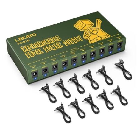 【並行輸入品】 LEKATO 充電式ギターペダル電源、内蔵10000mAhバッテリー、10絶縁DC出力、9V 300mA 100mAエフェクトペダルボード電源、USBポート付き、短絡過電