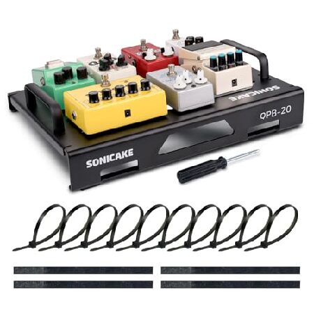 【並行輸入品】 SONICAKE ギターペダルボード、38.1 cm ギターエフェクト ライトアルミ合金ペダルボード ペダル付き マウンテンテープ、ケーブルタイ&ドライバ