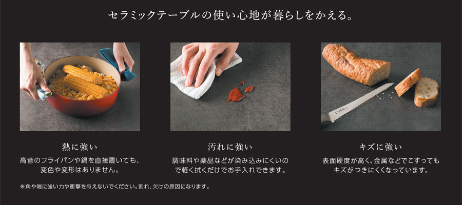 セラミックテーブルの特徴は、使い勝手の良さにあります。