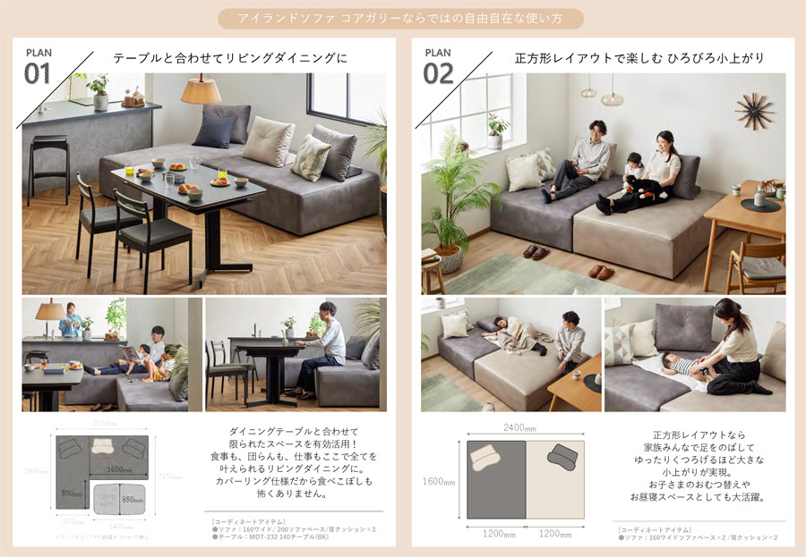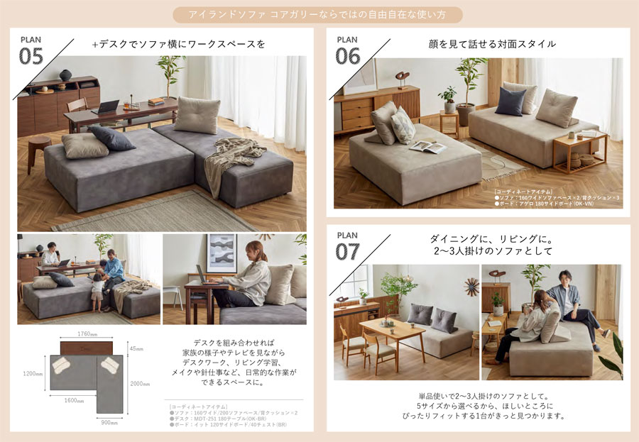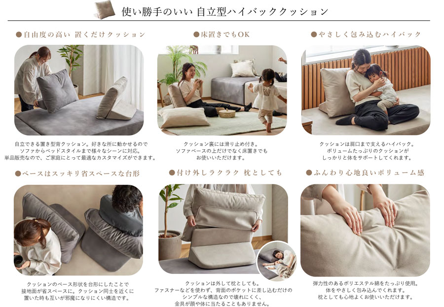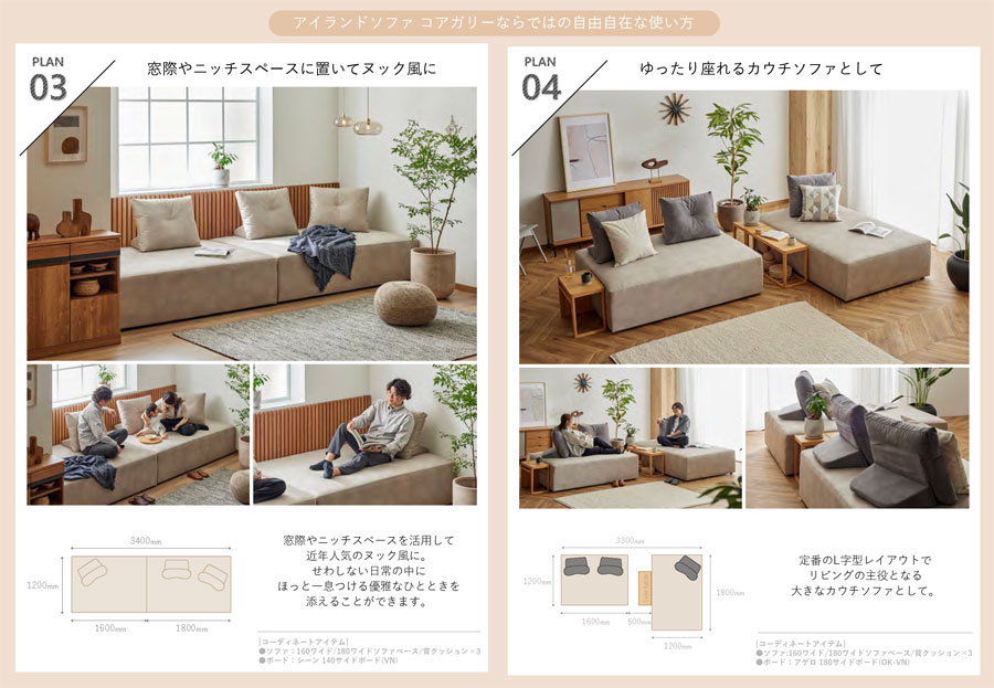 モーブル Coagally コアガリー アイランド ソファ 背クッション 置きクッション 枕 ハイバック ボリューム ベージュ グレー 国産 完成品