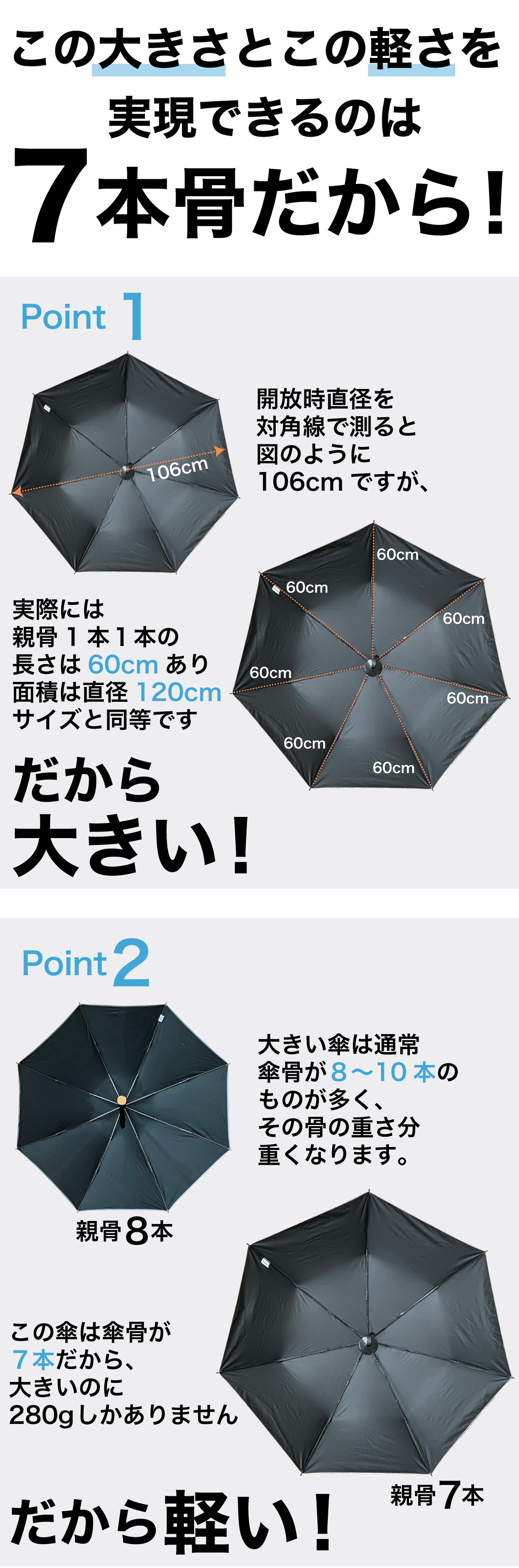 大きい 軽い 7本骨 日傘 メンズ 紳士用 日傘 手動 折りたたみ傘 晴雨兼用傘 遮熱 遮光 UVカット 106cm 軽量 280g UPF50+ 抗風 超撥水 【ギフト】 F.SEASONS M54
