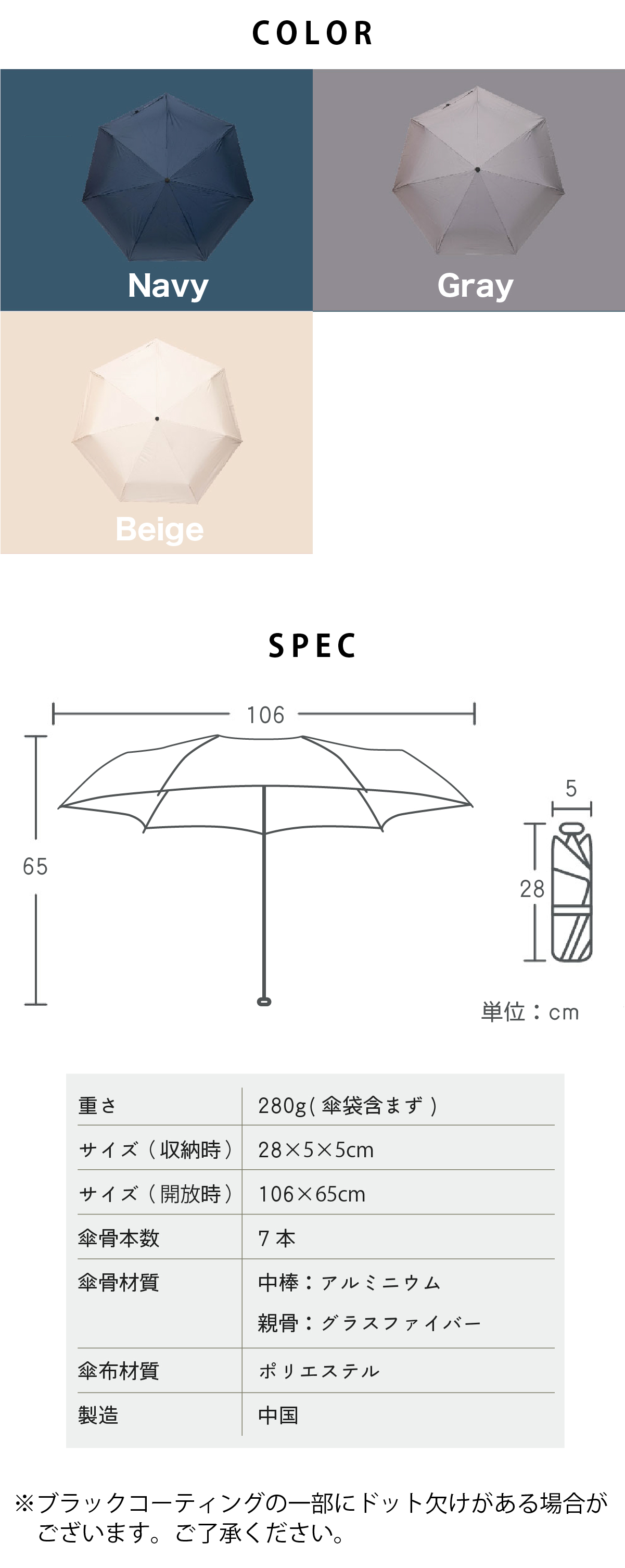 傘開閉方式:手動開閉