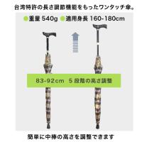 杖として使用する場合の高さが調整できるので、アウトドアやトレッキングなどの用途にも対応。