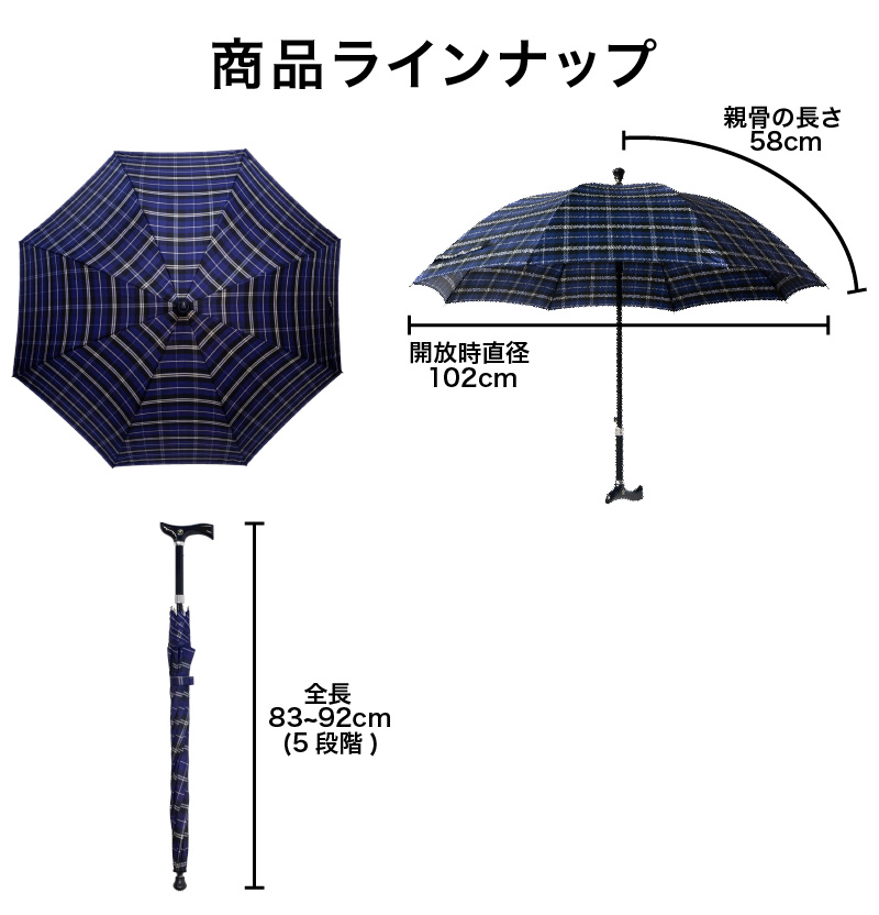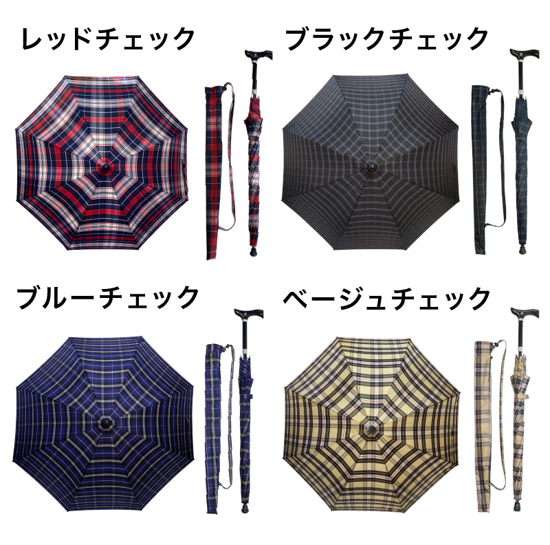 高さ調整ステッキ傘 杖傘 ステッキ 傘 杖 自動開閉 高さ調整可能 チェック柄 F-SEASONS