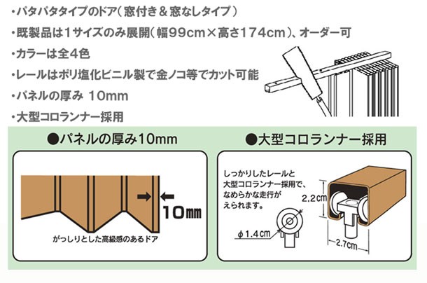 ■仕様 : パネル厚10mm、大型コロランナー採用
