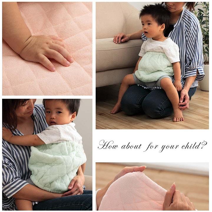 ■ 肌触りの良いタオル生地の腹巻き。これでお布団をかけなくても大丈夫!