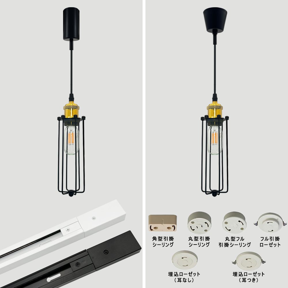 コード調節カバーサイズ:φ4.9cm×高さ9.8cm(配線ダクトレール用)/ φ8.5cm×高さ7cm(引掛けシーリング用)