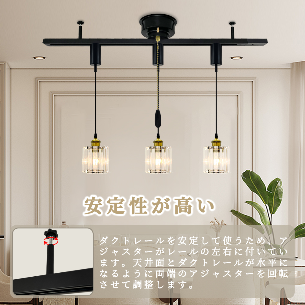 ■【取り付け簡単、高速便利】電気工事が要らず、便利なアダプターが付いているので、天井に設置されたローゼットと接続して押し、両側をアジャスターで調整してOKです。