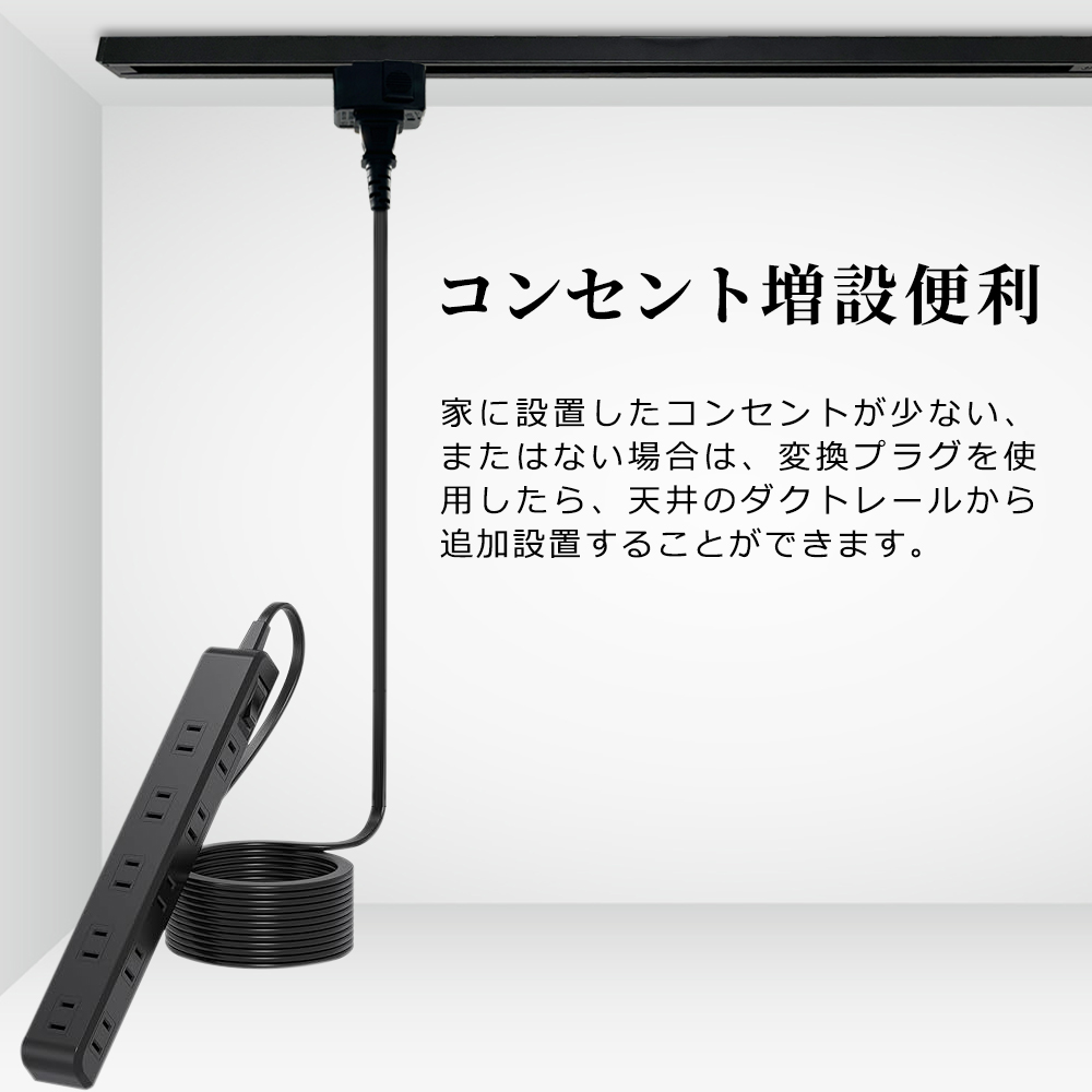 ダクトレール用 コンセント 変換プラグ 抜け止め ライティングレール用 天井照明 工事不要 簡単取付 PSE認証 黒 白 照明部品 おしゃれ