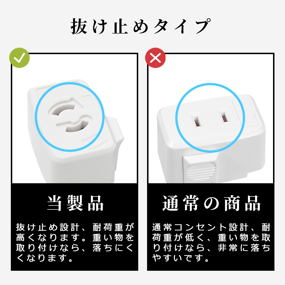 ■ 抜け止め設計、耐荷重が高くなります。重い物を取り付けなら、落ちにくくなります。