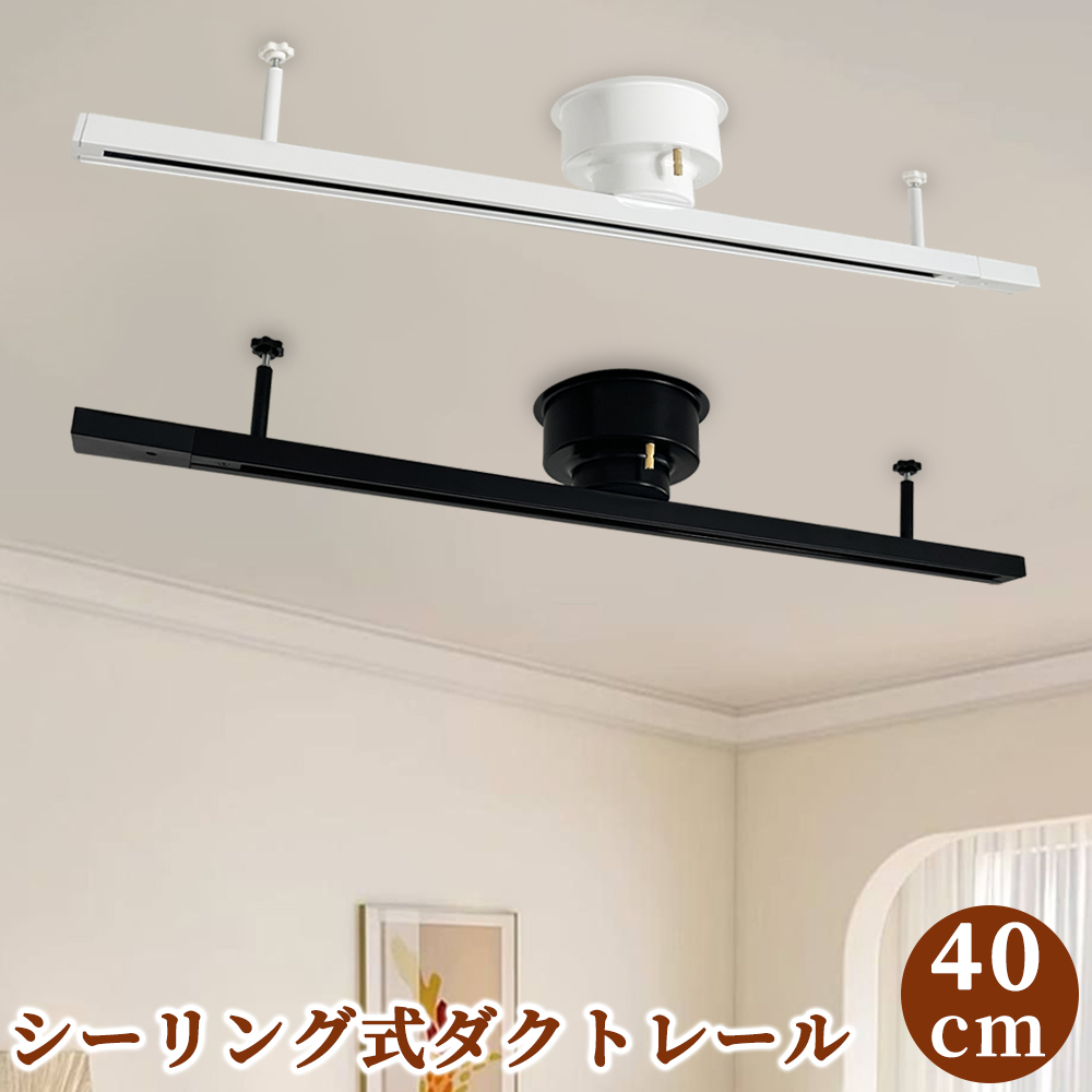 ダクトレール レール0.4M 引掛けシーリング対応 ライティングレール おしゃれ レール照明 350度回転可能 天井照明 簡易取付 賃貸一般型