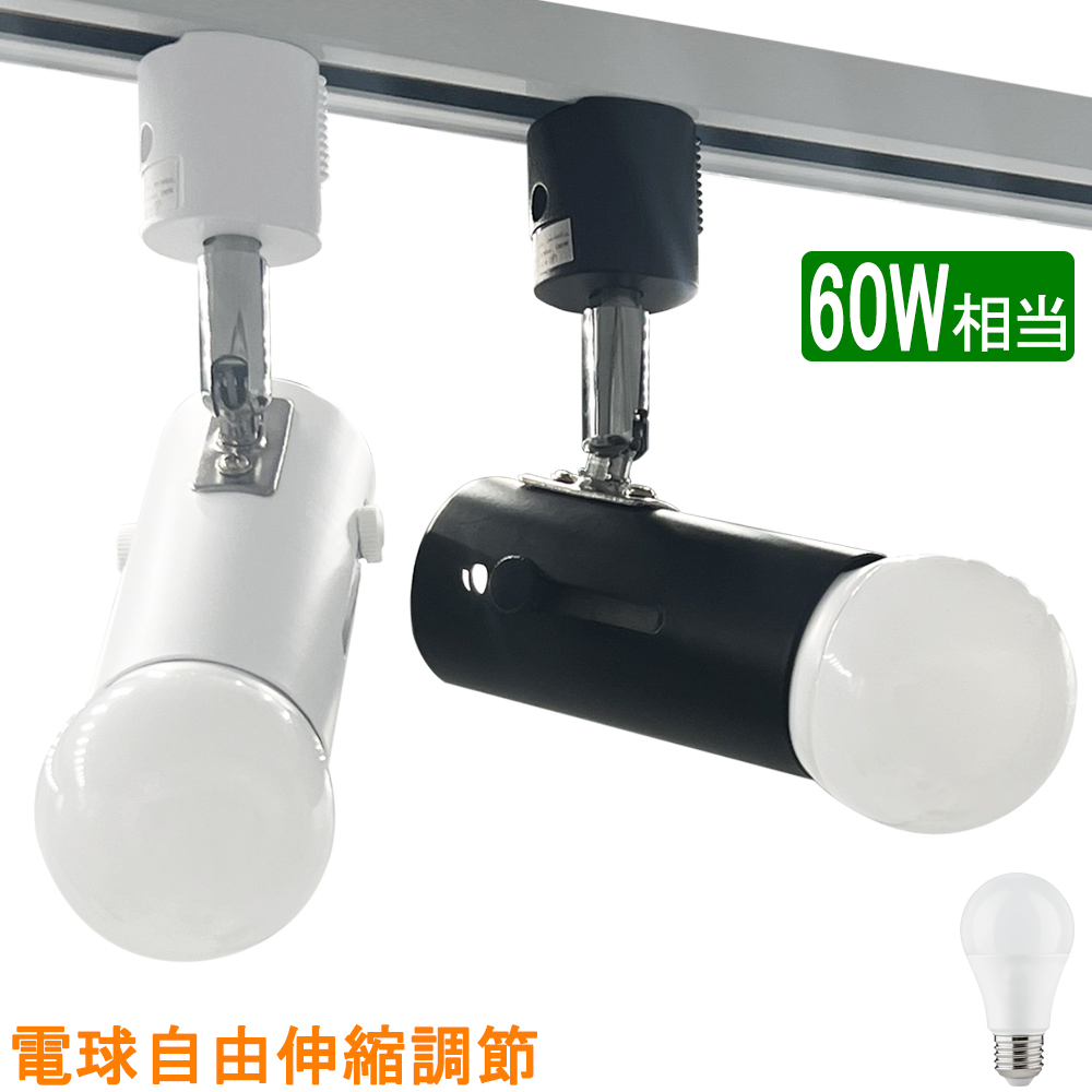 スポットライト ダクトレールライト 照射角度調節可能 E26 60W形相当 ダクトレール ライティングレール おしゃれ 天井照明 LED電球付き
