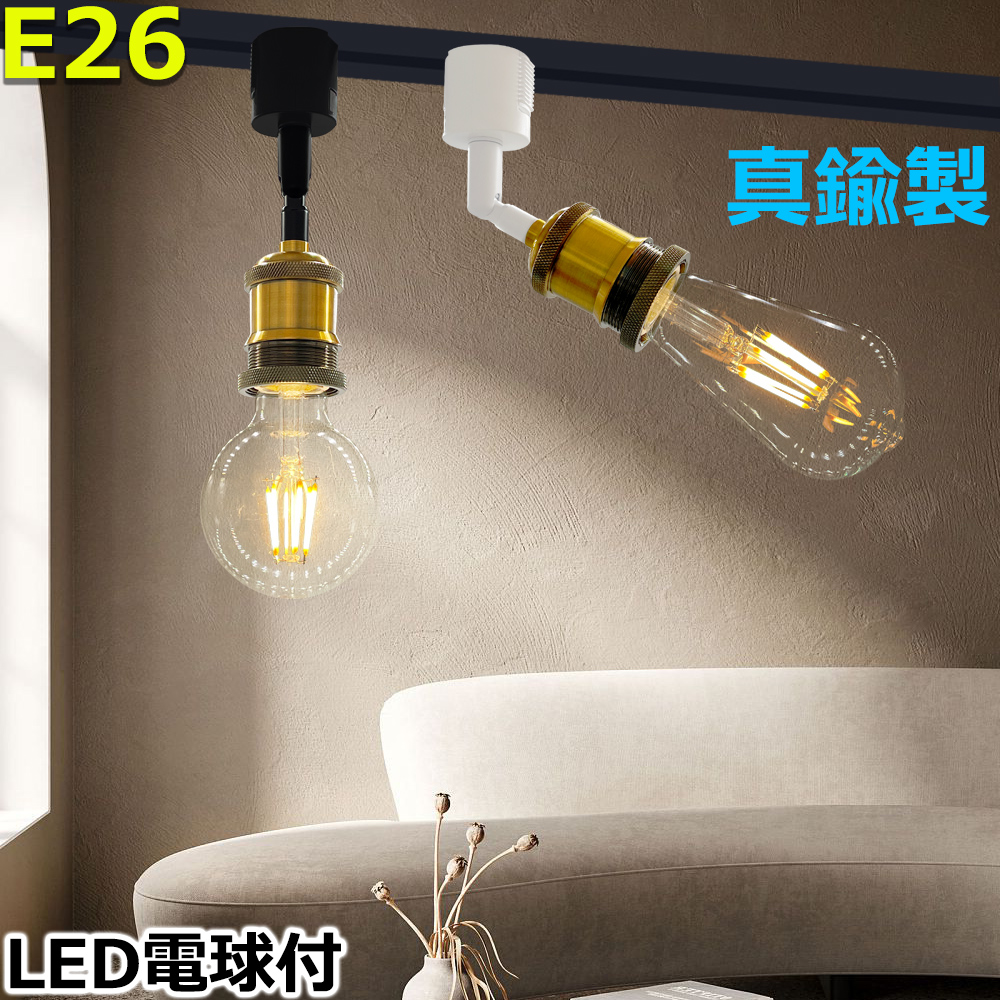 レールライト 真鍮ソケット スポットライト E26 レトロ 北欧 アンティーク ダクトレール ライティングレール レール照明 天井照明 おしゃれ LED電球付き
