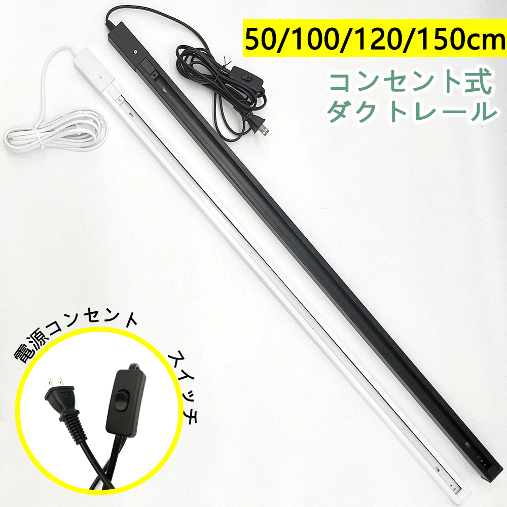 ダクトレール コンセント式 ライティングレール スイッチ付き電源コード長さ0.5〜1.5m 簡易取付 工事不要