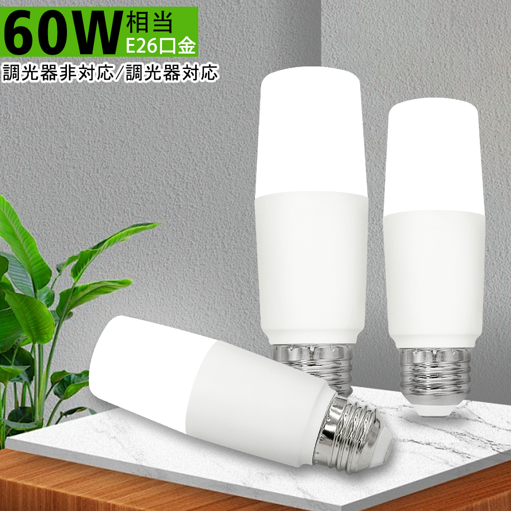 LED電球 T形 E26 60W相当 広配光 LEDライト 円筒形 LEDランプ T型 密閉器具対応 小型器具対応 電球色 昼光色