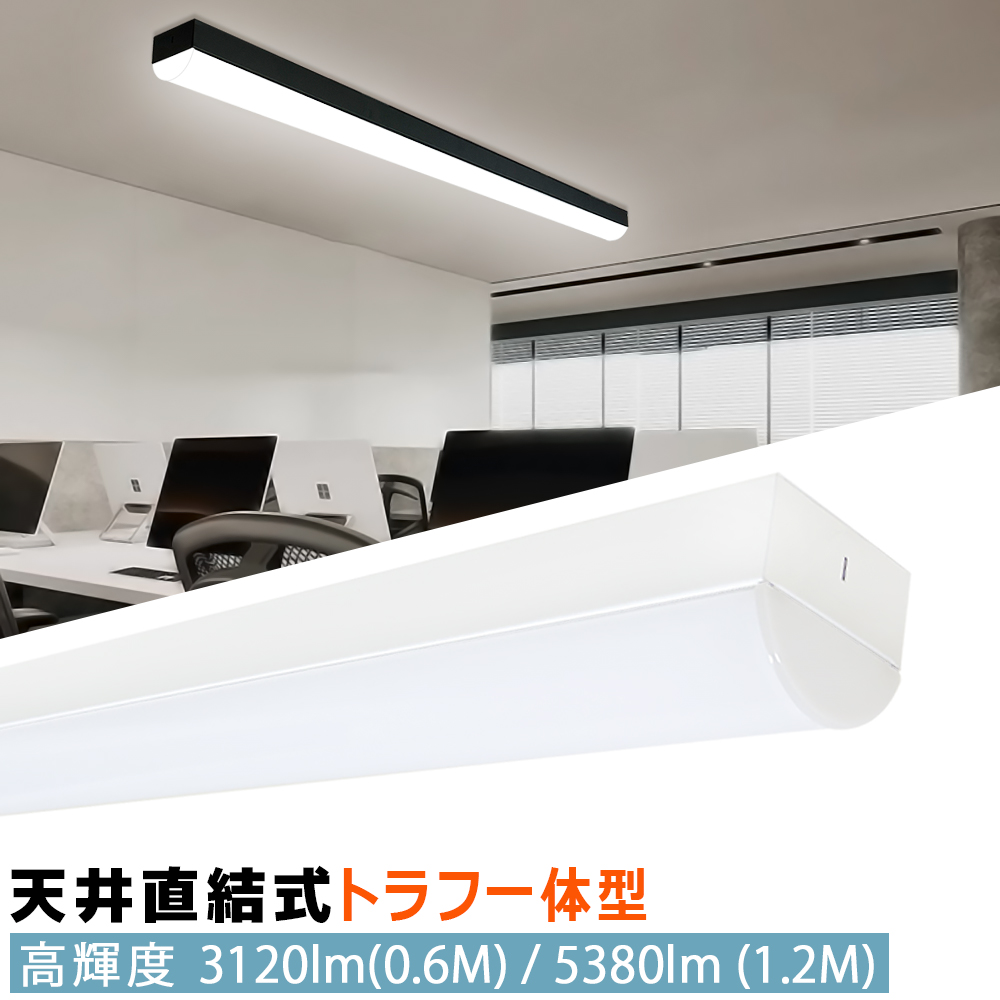 LEDベースライト トラフ一体型 高輝度 天井直付型 蛍光灯照明器具 天井照明 薄型 施設用 省エネ 防塵 防虫 40W形 20W形 黒白2色 60cm/120cm長さ可選