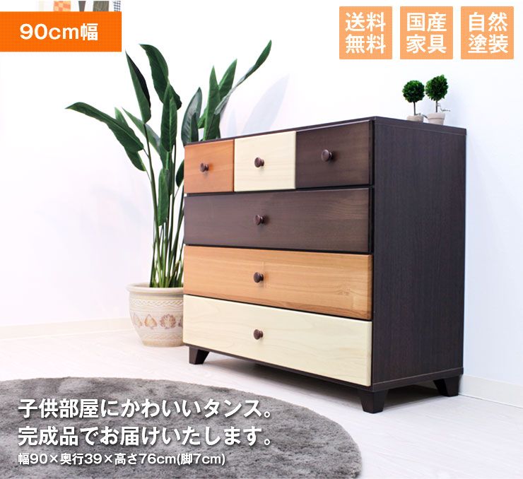 子供部屋に最適のかわいいチェストです。国産で安心してご使用いただけます
