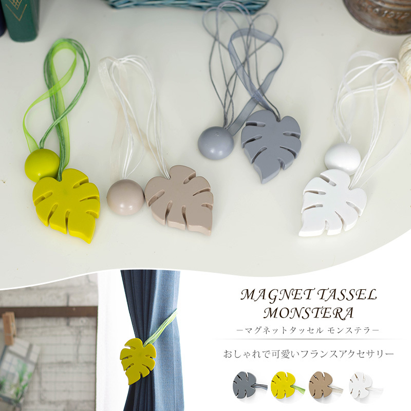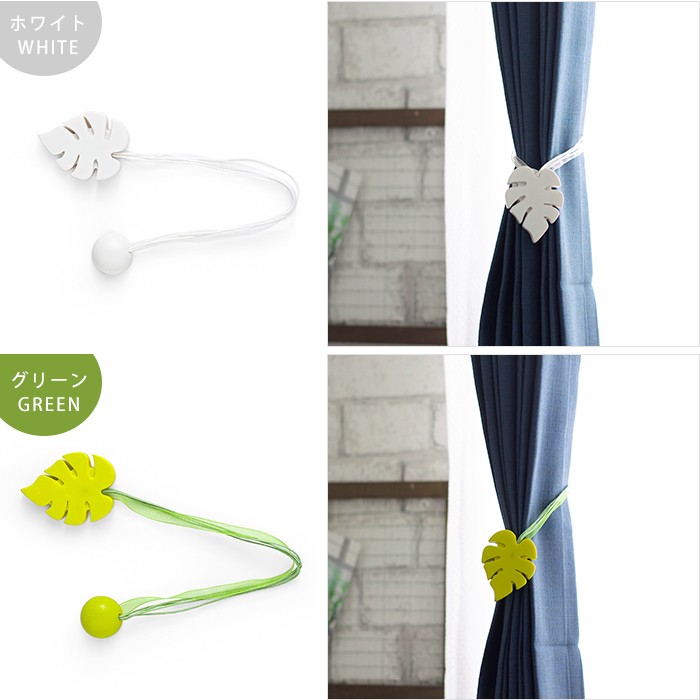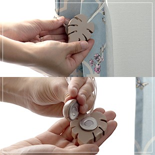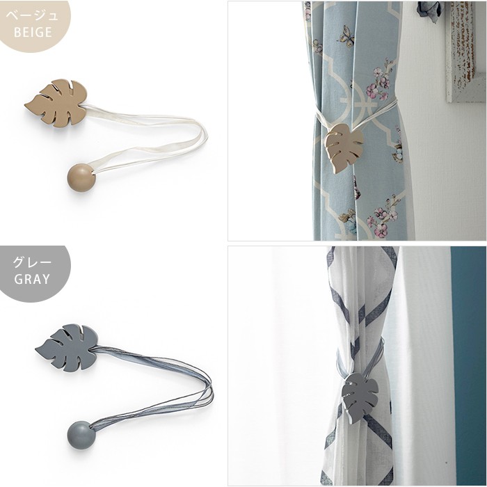 コードでカーテンを束ね、マグネットで留めるマグネットタッセルです。