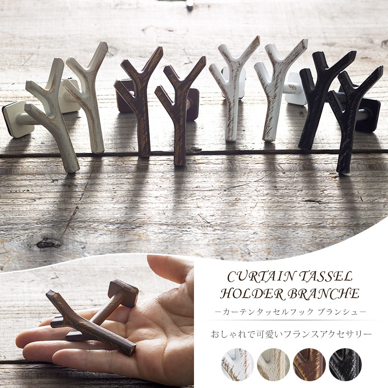 | 当社バイヤーが直接ヨーロッパで買い付けてきたフランスメーカーのカーテンアクセサリー。 房かけにもこだわる窓周りインテリア上級者の方に。 シンプルだけど他にはない小枝のモチーフに、エイジングペイントされたデザイン。 北欧インテリアやナチュラルインテリアにおすすめです。 |