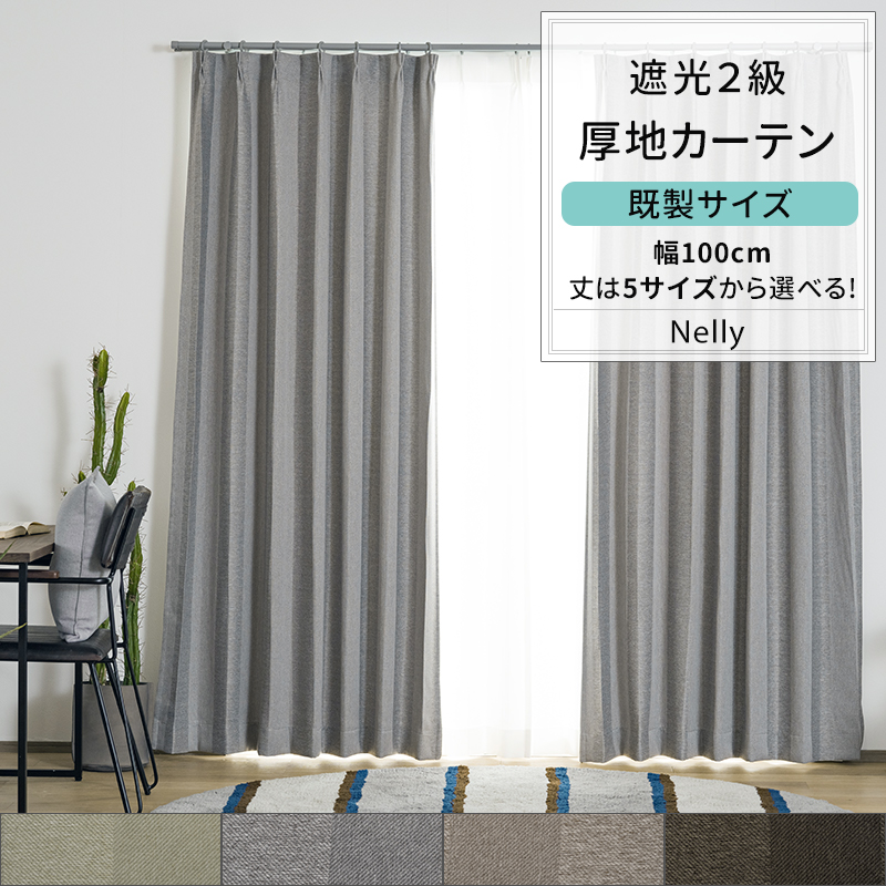 カーテン 既製サイズ 幅100cm 丈は105cm 135cm 178cm 200cm 210cmの5サイズから選べる AH506 ネリー 2枚組 遮光2級 ストライプ 和室 おしゃれ OKC4 爆買