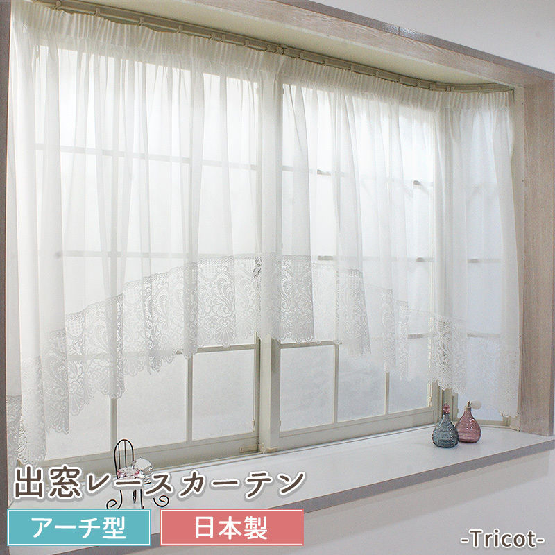 出窓カーテン/繊細な日本製。高級感のあるトリコットレースのアーチカーテン
