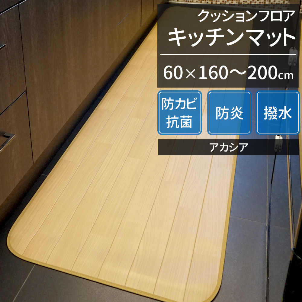 クッションフロア キッチンマット 木目柄 アカシア 幅60cm×長さ160〜200cm JQ