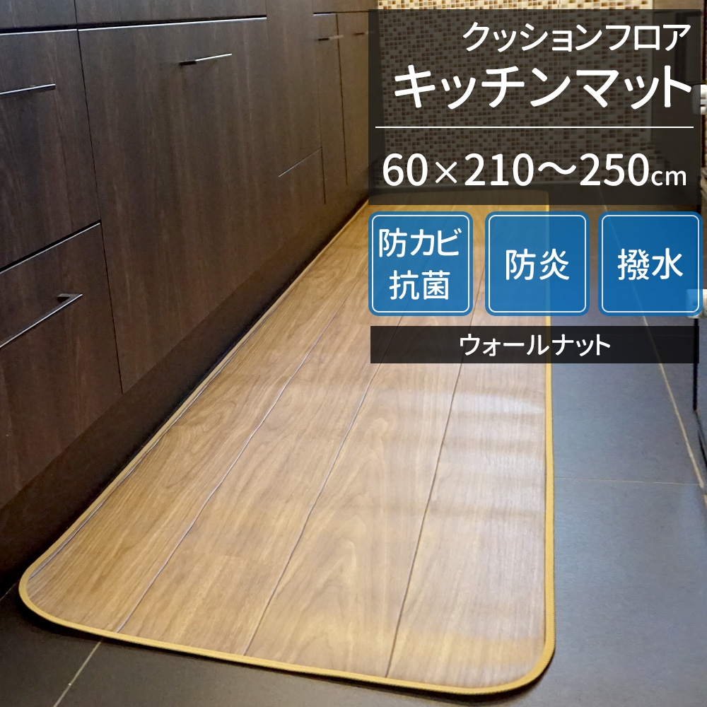 クッションフロア キッチンマット 木目柄 ウォールナット 幅60cm×長さ210〜250cm JQ