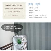 ※表面に汚れ防止のフッ素コートがしてある壁紙や、凹凸の大きいビニールクロスの場合、うまく貼れなかったり剥がれてくる可能性があります。またペンキや漆喰などの塗り壁の上から貼った場合、剥がす時に下地の塗料がはがれる場合があります。