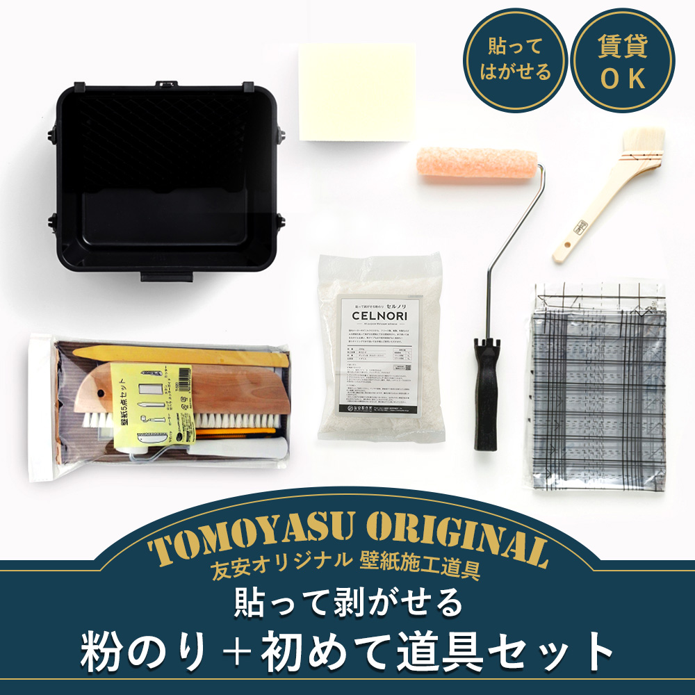 貼ってはがせる壁紙用粉のり セルノリと初心者用道具のお買い得セット