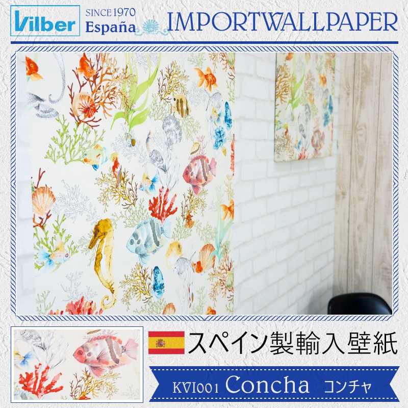 壁紙 輸入壁紙 張り替え 自分で おしゃれ スペイン製 不織布フリース Concha コンチャ 幅68cm 1本 Vilber C-F-1