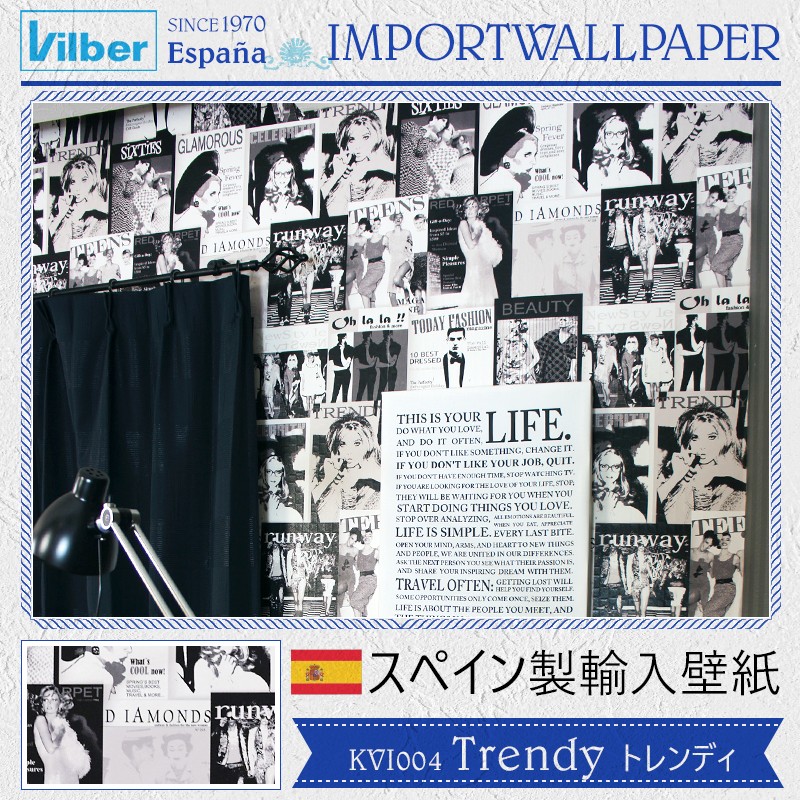 壁紙 輸入壁紙 張り替え 自分で おしゃれ スペイン製 不織布フリース Trendy トレンディ 幅68cm 1本 Vilber C-F-1