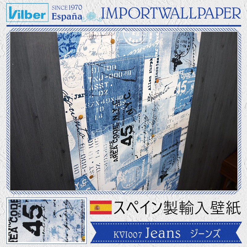 壁紙 輸入壁紙 張り替え 自分で おしゃれ スペイン製 不織布フリース Jeans ジーンズ 幅68cm 1本 Vilber C-F-1