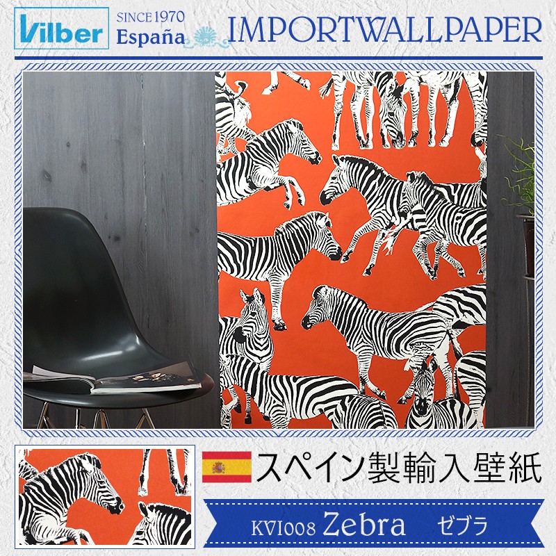 壁紙 輸入壁紙 張り替え 自分で おしゃれ スペイン製 不織布フリース Zebra ゼブラ 幅68cm 1本 Vilber C-F-1