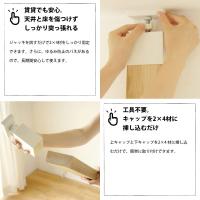 | ご使用に関して | ・この商品は屋内用です。 ・この商品は市販の2×4材(38×89mm)に装着することでねじ・釘を使わず柱を床と天井に突っ張ることを目的とした商品です。 ・天井の高さから95mm短い2×4材を用意してください。 ・下地のしっかりした場所に設置してください。下地の弱い所に設置すると転倒の原因となったり、天井を破損したりする恐れがあります。 ・傾斜した天井、床面には設置しないでください。転倒の原因になります。 ・床と垂直に設置してください。斜めに設置すると、転倒の原因になります。 ・この商品は一般家庭の天井の高さを想定した商品です。 ・この商品は縦突っ張り専用です。横向きには使用しないでください。 |