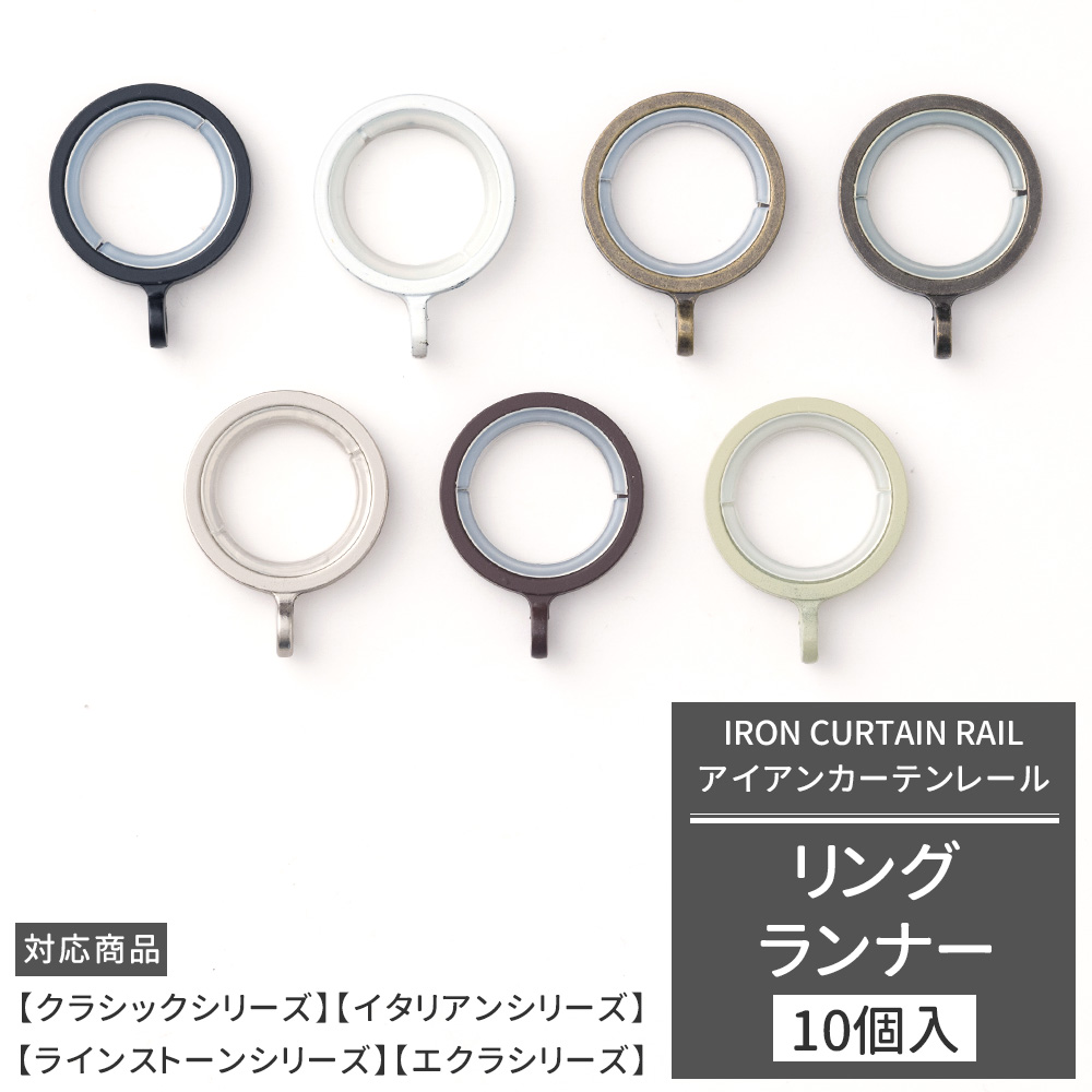 | ・この商品は10個で1セットです。1個単位でのご注文はできません。 ・アイアンカーテンレール クラシック(オーダータイプ)、イタリアン(オーダータイプ)・ラインストーンシリーズに付属しているリングランナーと同じものとなります。 |