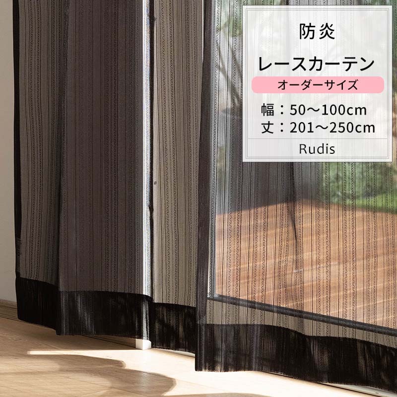 レースカーテン おしゃれ ブラック 黒 防炎 モノトーン モノクロ ブラックレース オーダー ストライプ 幅50〜100cm 丈201〜250cm RB463 ルディス 1枚 OKC5
