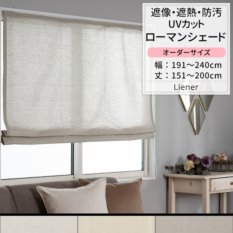 ローマンシェード ミラーレース リネン風 遮熱 UVカット 遮像 見えない オーダー ドラム型 幅191〜240cm 丈151〜200cm RH264 リーネル 1枚 OKC5