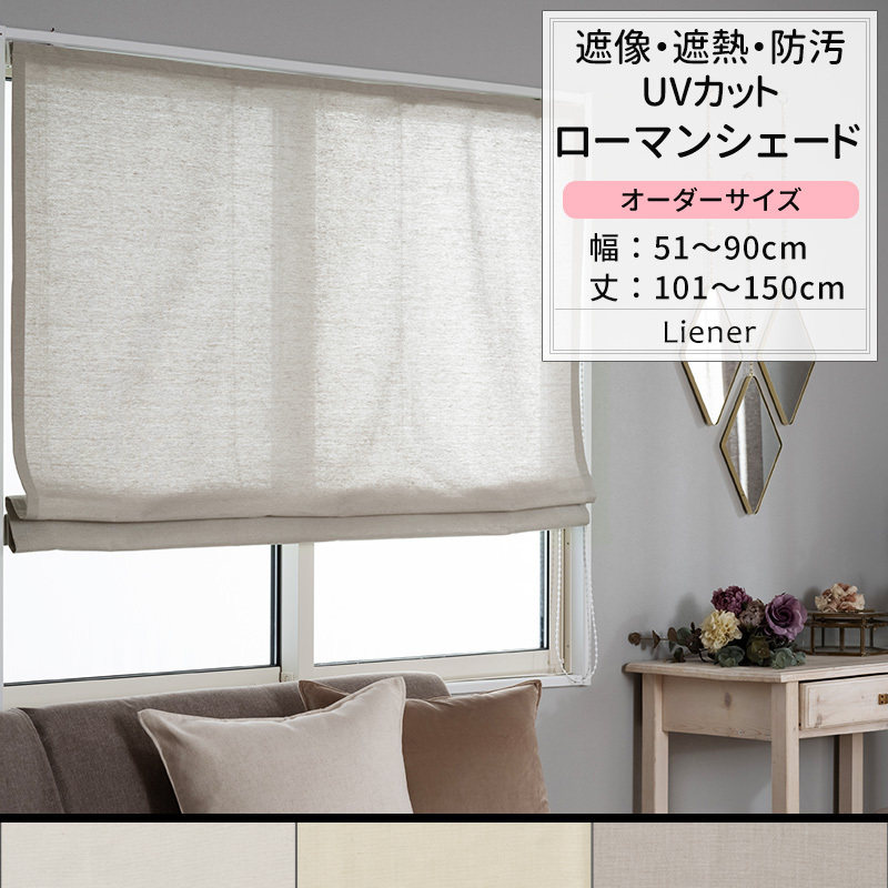 ローマンシェード ミラーレース リネン風 遮熱 UVカット 遮像 見えない オーダー ドラム型 幅51〜90cm 丈101〜150cm RH264 リーネル 1枚 OKC5