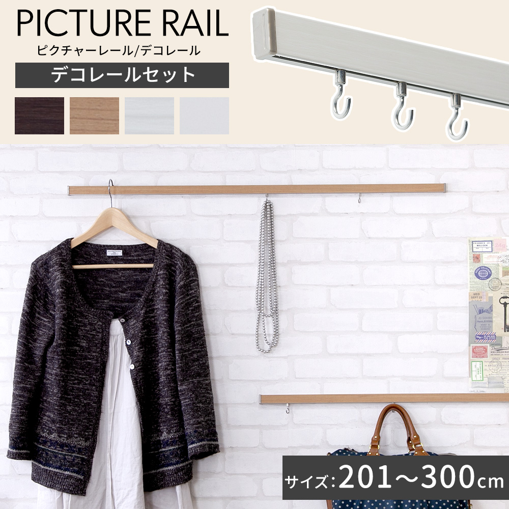 | 狭い空間を有効活用デコレールの壁面収納で「魅せる収納」 アイデア次第でいろんな使い方ができるインテリアレール「DecoRail-デコレール-」 レール、ブラケット、フック、キャップがセットになっているお得なセットです。 おしゃれな木目調3色(ホワイトウッド・ナチュラルウッド・ダークウッド)とベーシックなホワイトの4色で壁紙やお部屋のテイストに合わせて選べます。 |