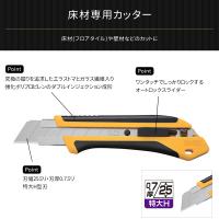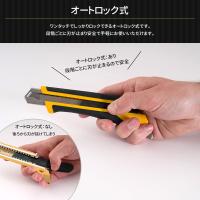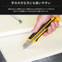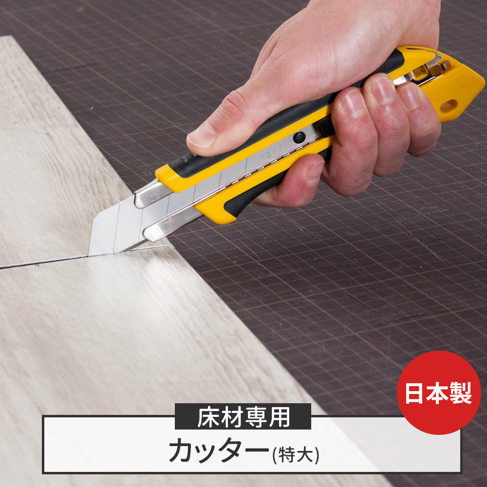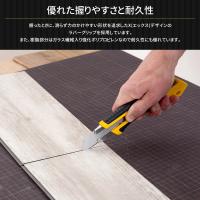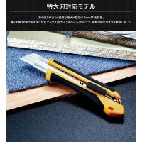 | 握ったときに、滑らず力のかけやすい形状を追求した特大カッターナイフ。床材や壁材のカットにおすすめ。 [商品特徴] ・特大刃対応モデル ・手の大きな方にも扱いやすい ・優れた握りやすさと耐久性 ・オートロック式 |